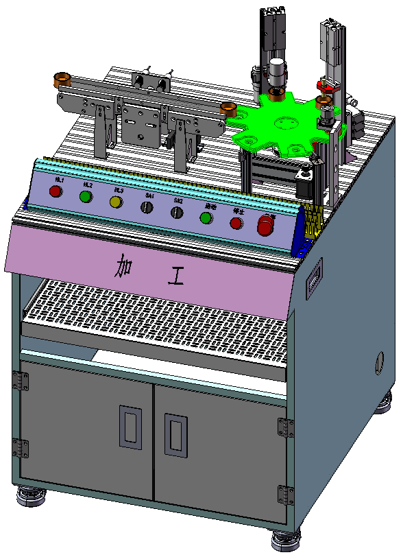 ? ? 加工單元由傳輸線、加工站、轉(zhuǎn)盤機(jī)構(gòu)等組成。完成物料加工、檢測及輸送等功能。